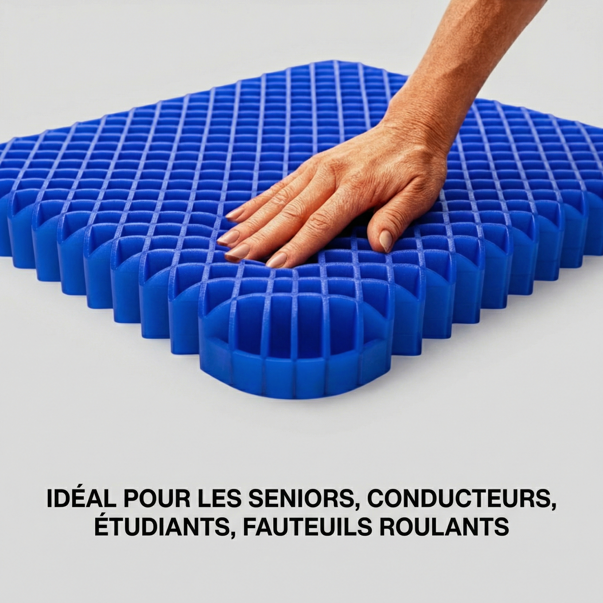 Le coussin Apazia™ change ça. Ses alvéoles en gel médical répartissent votre poids uniformément — votre coccyx, vos hanches et votre dos ne subissent plus la pression.